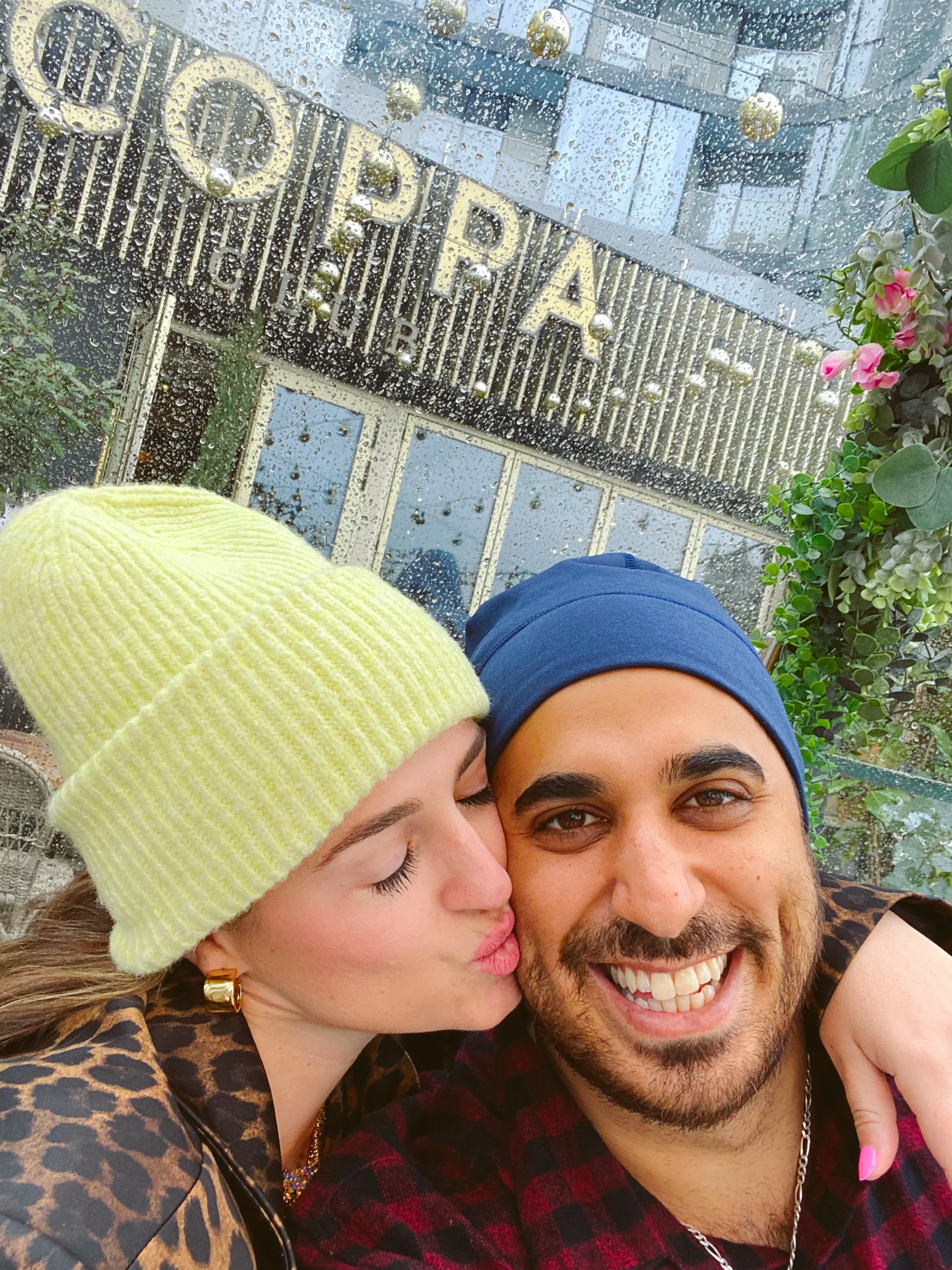 Left swipe, left swipe, right swap… MATCH! I remember matching with Mustafa on the dating app Bumble the first official locked down weekend of Covid-19, back when everyone was still under the impression that what we now know as a major global pandemic was only going to last a couple of weeks. At the time I was just laid off from my then job and was living at home. My dad was trapped in Panama so it was just me and my mom and now my new friend Mustafa. We texted for two weeks before he asked me on our first “date”. His idea was to have us each order our favorite meals from our favorite restaurants for the other person and have it delivered. When I went outside to pick up my delivered meal on the driveway there was takeout Din Tai Fung (YUM!), a bottle of champagne (Major YUM!), a dozen roses AND MUSTAFA WAITING IN HIS CAR for me to notice him with a huge smile on his face. I was just expecting the delivery guy and SHOCKED to see him. I ran inside giddy with butterflies barely able to tell my mom what had just happened. Was this man too good to be true or had I just been locked inside two weeks too long?!